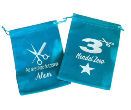Pochon doux et élégant pour garder une mèche de la première coupe de cheveux des 3 ans.